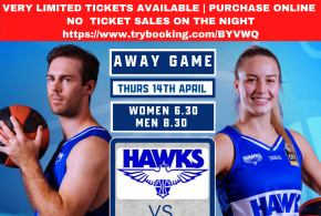 There are limited tickets to this week’s round 2 game vs the East Perth Eagles at Herb Graham Recreation Centre. Tip off Women 6:30pm Men 8:30pm To Book tickets see below: https://www.trybooking.com/BYVWQ # Hawksasone