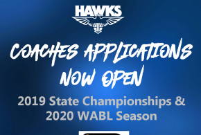 Hawks WABL 2020 and State Champs 2019 coaching applications are now open Click on the link to apply: https://forms.gle/p7p4LCtA5QjK6HCSA Applications close 5pm Thursday 12th September.