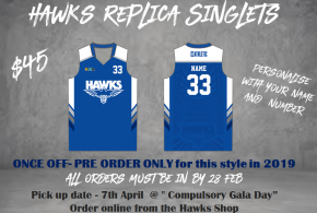 Hawks 2019 Replica Singlets are now on sale for $45.00 Orders are due by February 28th. Pick up is at the compulsory Gala Day on April 7th. Please note: Numbers to a maximum of 2 digits. It is suggested names…
