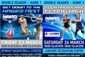 Its a big week in the Hawks Nest with a double header. Home at Bendat Basketball Centre on Friday night and away at Lakeside Recreation Centre on Saturday Night. Get behind your Hawks!
