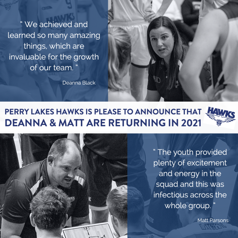 Perry Lakes Hawks announce the re-appointment of Deanna Black and Matt Parsons as coaches for the 2021 SBL season.
