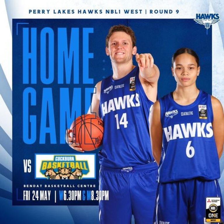 Hawks take on the Cougars Friday Night at Bendat Get to Bendat Friday night !! Don’t miss out on the action Friday May 24th Bendat Basketball Centre Cockburn Cougars Women Tip-Off 6:30pm Men Tip-Off 8:30pm Tickets available at the door WABL and domestic players FREE entry Watch it live and free on the NBL1 app View all sponsors Become a sponsor Related Posts 27/08/2024 WABL Finals Week 1 Wrap Read more 02/08/2024 NBL1 West Women through to Preliminary Final Saturday Night against Cockburn Read more 31/07/2024 Parking at Bendat on Thursday and Friday Read more 27/07/2024 Hawks Women into the Semi-Final Thursday Night at Bendat Read more