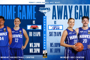 It’s our first double header of the season, and the first of 3 in a row for the Hawks. Game 1 – Home Friday April 19th Bendat Basketball Stadium Perth Redbacks Women Tip-Off 6:30pm Men Tip-Off 8:30pm Tickets available at…