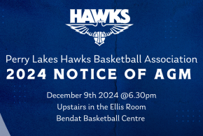 Notice is hereby given of the Annual General Meeting of the Perry Lakes Hawks Basketball Association (Inc) to be held MONDAY 9th December 2024 at 6.30pm in the Ellis Room at Bendat Basketball Centre. Agenda: Agenda AGM December 9th December…