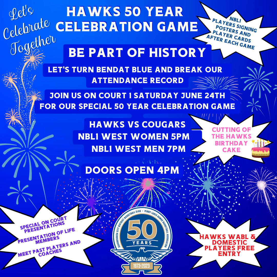 Hawks 50th Celebration Game at home Saturday Night vs Cougars