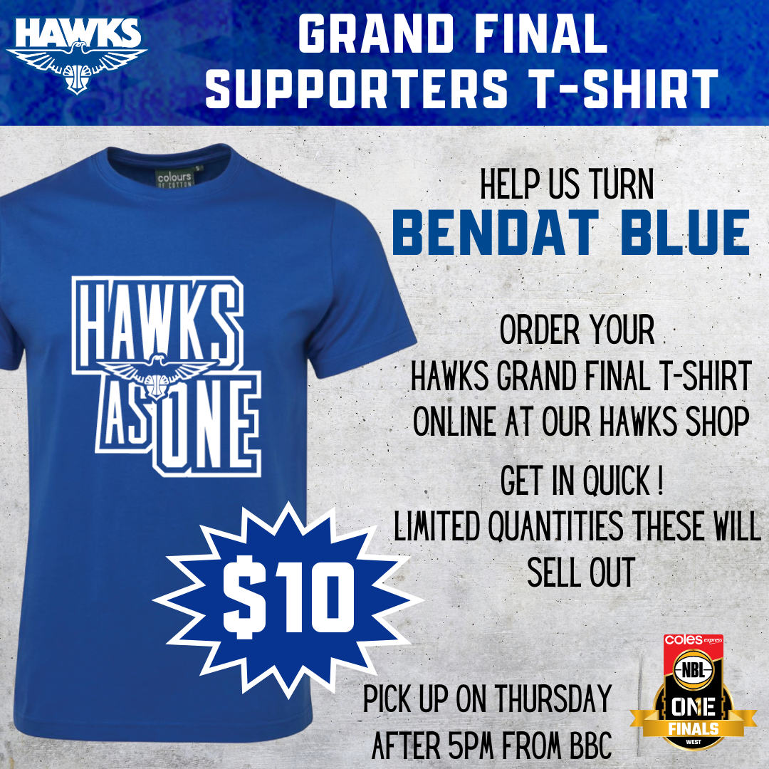 We have Grand Final -T-shirts on sale for $10 online in our Hawks shop. Click here to get your supporters shirt -Limited stock and sizes so get in quick… https://hawksgear.shopdesq.com/