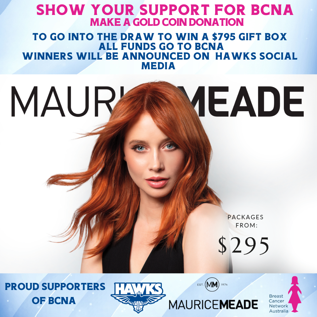 The Hawks will play in special pink singlets and all this week, everyone who donates a gold coin (or more) will go into the draw to win a magnificent Gift Pack including a gift voucher to Maurice Meade and other gifts valued at $750. You can donate at the Hawks office during the week or at the game on Friday night.