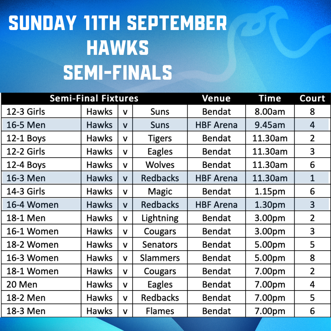 5 teams got through to the semi’s from the elimination rounds to join the 11 Hawks teams that were already through to semi-finals, so 16 teams through from the Hawks which is a fantastic achievement.